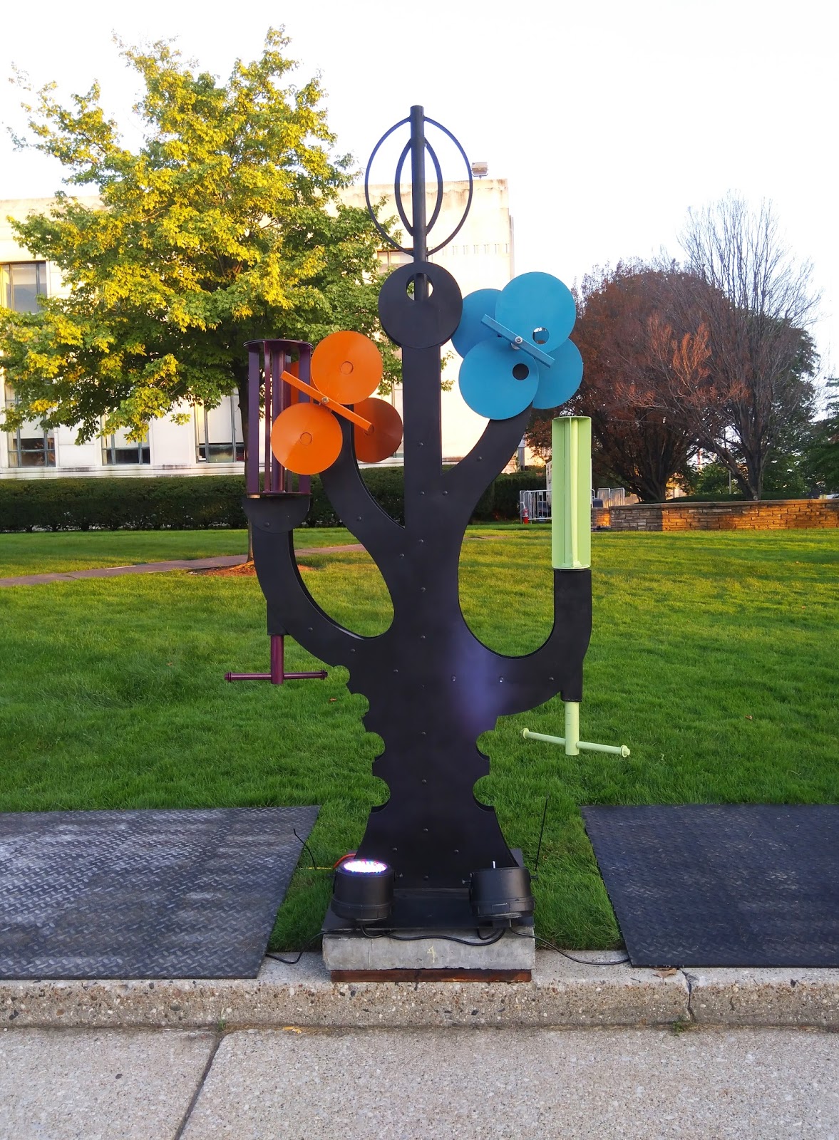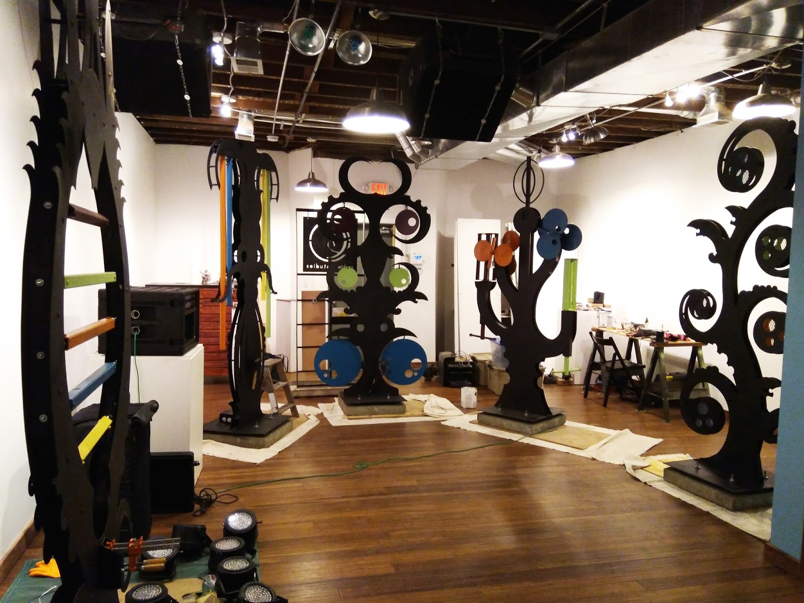 The Expanded Seussian Arkestra is composed of interactive sculptures, each sculpture playing a key role in an aural ensemble. Part imagination, part melodic / rhythmic genius,The Expanded Seussian Arkestra creates an interactive visual and audio playscape, drawing in participants to interact with each of the larger than life musical instruments.